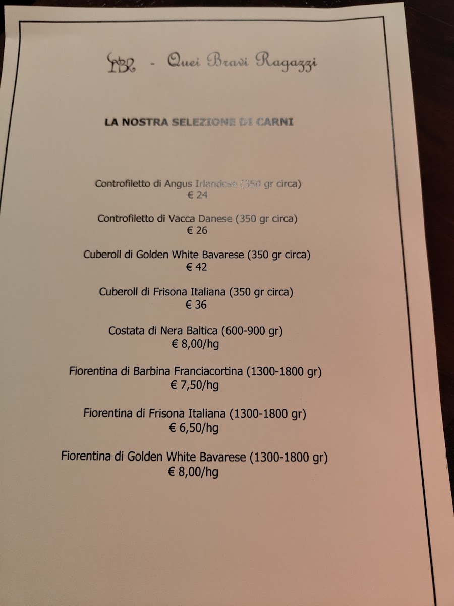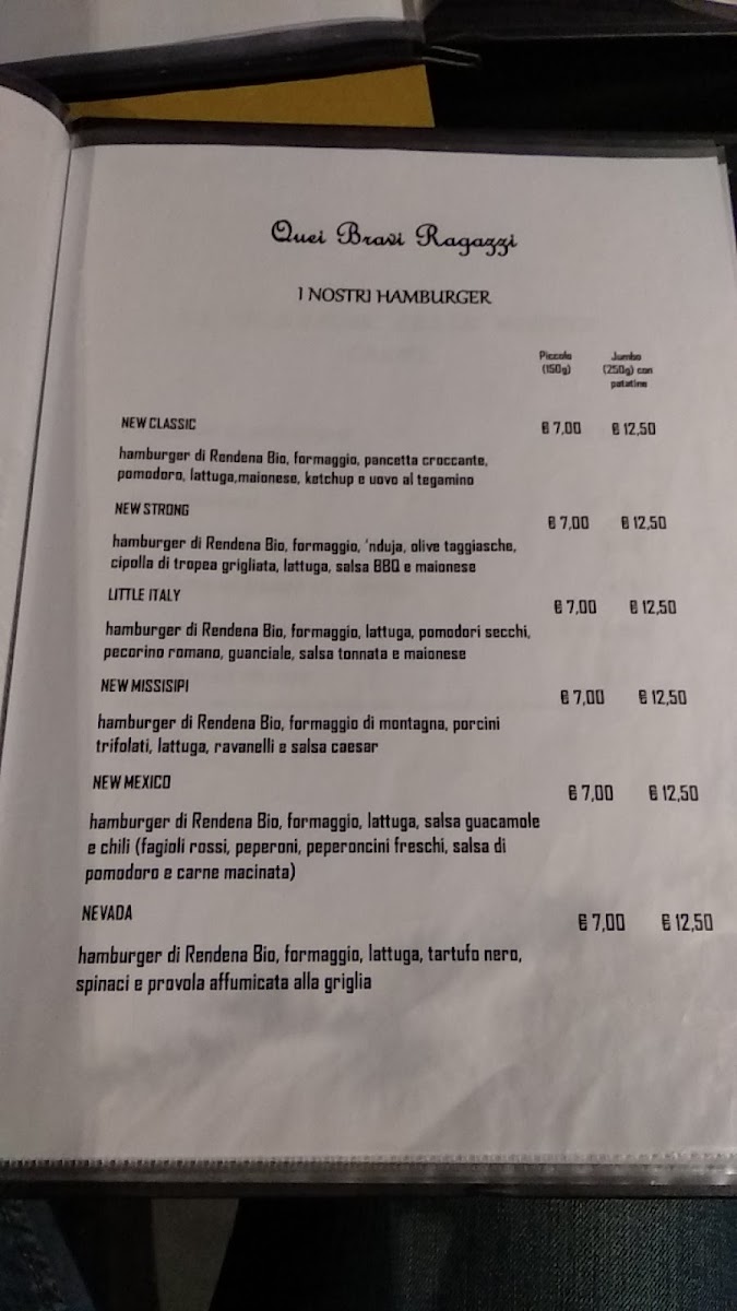 The menu at Qbr - Quei Bravi Ragazzi delivers a satisfying blend of hearty Italian flavors and bold meat-focused creations, leaving a strong final impression. Standout options like the perfectly grilled Fiorentine and the rich, flavorful Horse Steak highlight the kitchen’s expertise with premium cuts, while the Bif offers a more casual yet equally satisfying bite. For those craving something modern, the New Classic Burger balances juiciness and seasoning with impressive finesse. The menu also shows creativity in items like the indulgent Barca Di Lardo E Carne and the generously filled Panino Little Italy 250 G., both of which capture the restaurant’s signature approach to combining traditional ingredients with contemporary flair. To round things off, the Meringata Al Cucchiaio provides a light yet decadent dessert that perfectly complements the richness of the main courses. Overall, the menu feels cohesive, well-curated, and memorable-an experience that confidently showcases both quality and character.